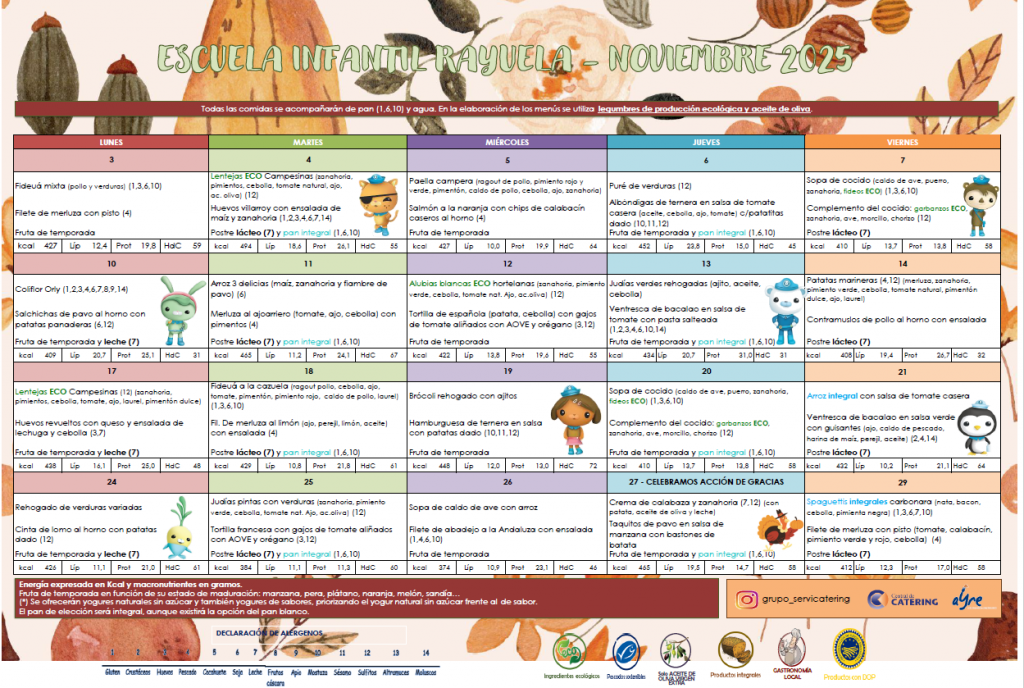 MENÚ ESCUELA INFANTIL NOVIEMBRE 2025