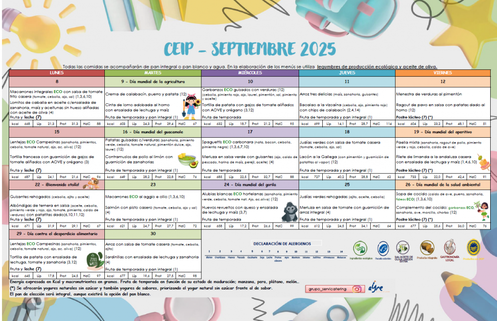 Menú de septiembre de 2025