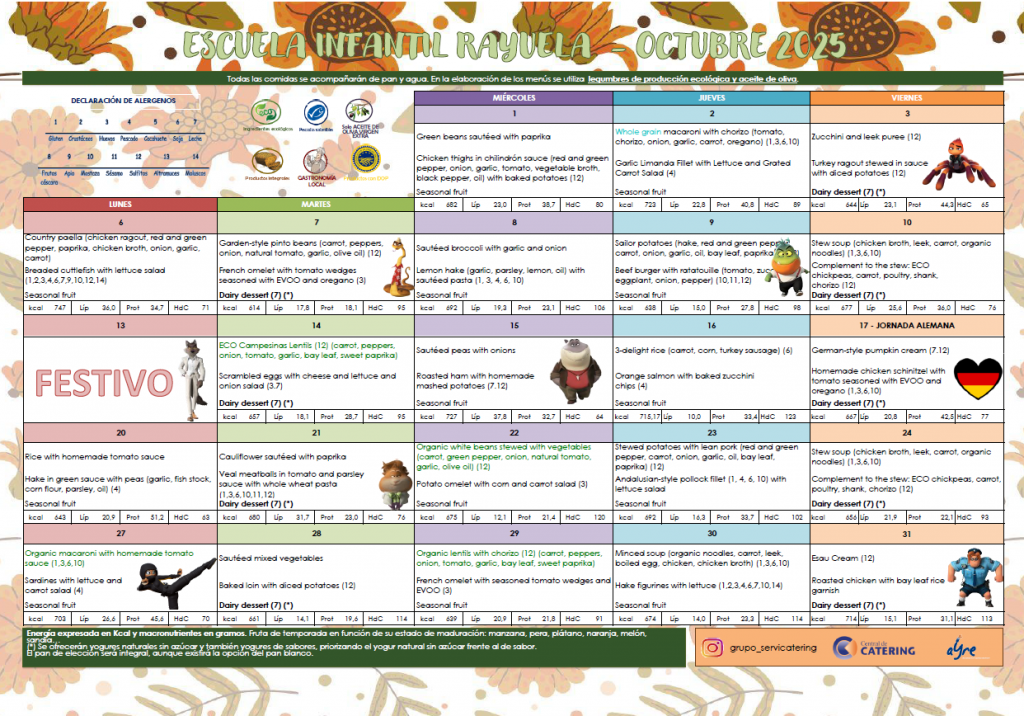 Menú de octubre de 2025